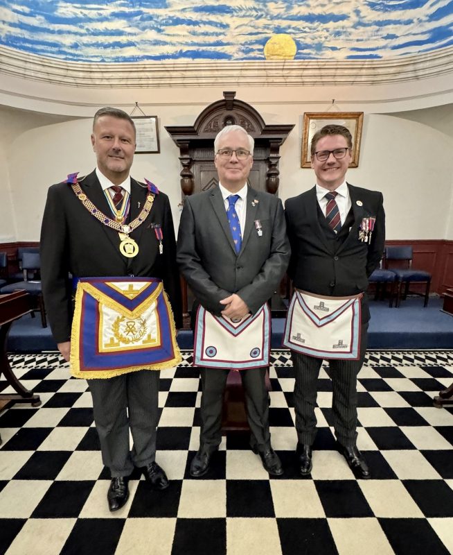 Before Bro David took his rightful place in the Lodge as a Mark Master Mason and member of Old York. There was one more duty to be done by W. Bro Andrew and that was to congratulate Bro David and present him with a envelope which contained a welcoming letter from the R.W. Provincial Grand Master and a personal invitation to attend the annual Provincial Grand Lodge meeting in a April 2026. With that W. Bro Roddy resumed his place in Master’s Chair and continued with the remaining items on the summons.