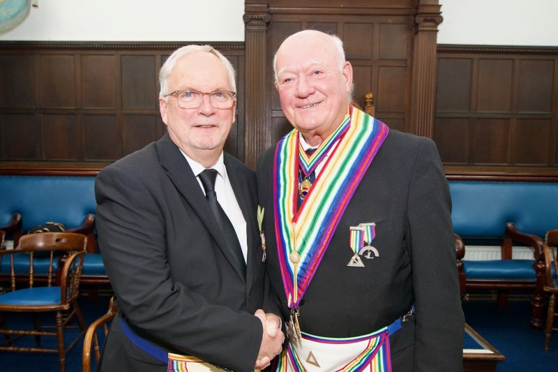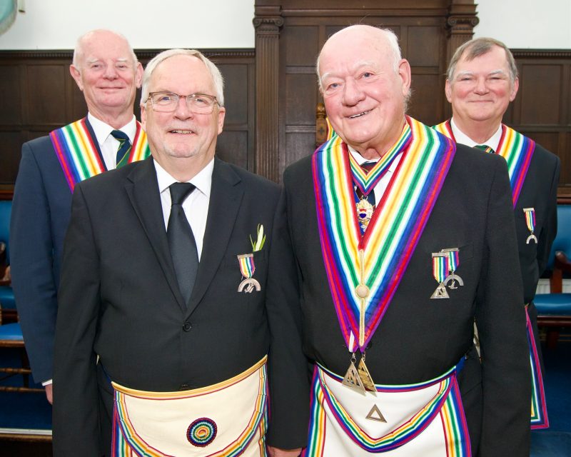 The Elevation ceremony then took place, undertaken in excellent form  by W.C. Ray ably assisted by particularly, the S.W. W.Bro. Charles Lindsay, Junior Warden, Bro. Alan Bartrop  and the Senior Deacon, W,Bro. Ian Yates  who stood in, W,Bro. Rodney Tolson then standing in as D.C. for W.Bro. Ian. No ritual books evident, very few prompts and a smooth, professional Elevation for which Bro. Graham was truly impressed. I have been a member of the Lodge for twenty three years and have witnessed nothing better in all my time, congratulations to all who took part.