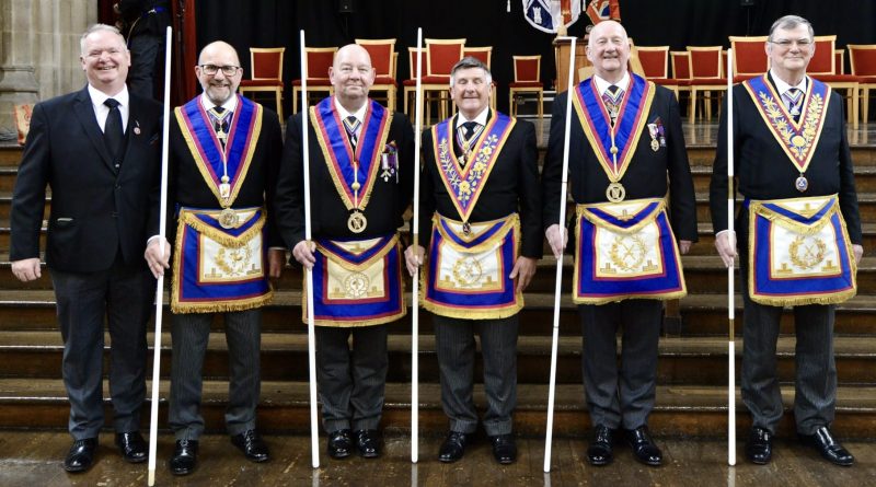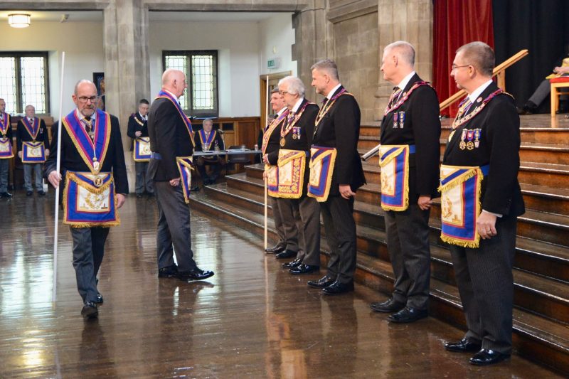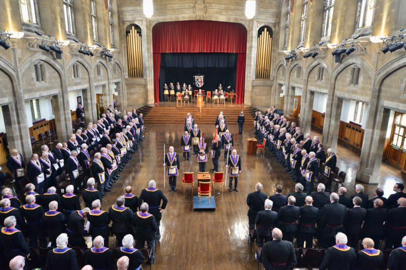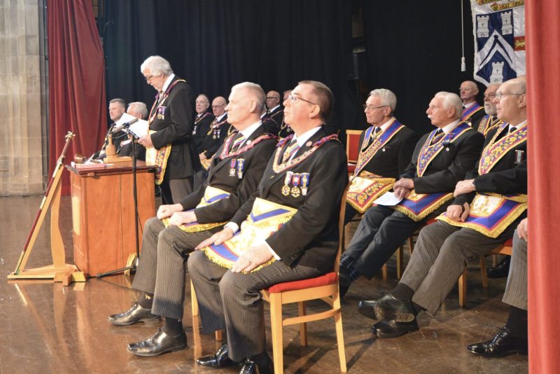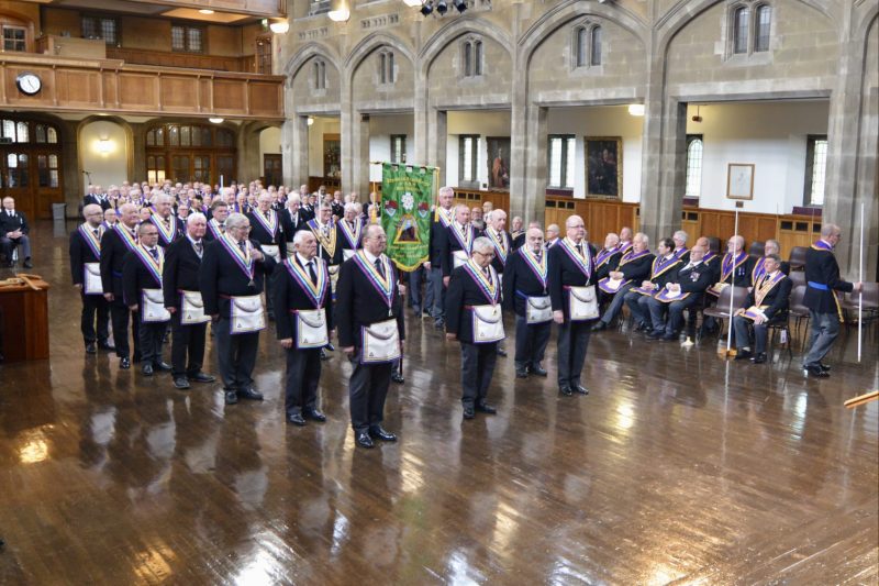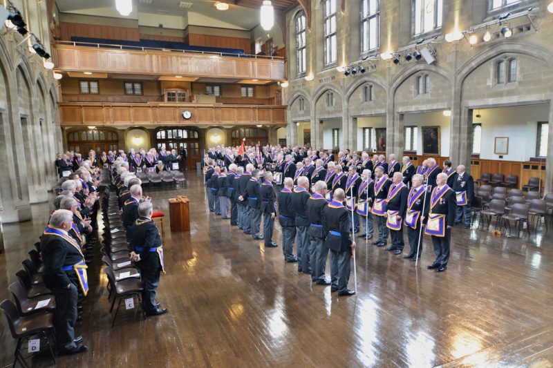 There was a total of nine processions which brought in honoured guests, a host of Provincial Grand Masters supported by various officers from their specific Province past rulers and of course both our own Provincial Grand Maser R.W. Bro. J. Trevor Bolton and even the Deputy Grand Master R.W. Bro. Denovan Keith Wilson. The most colourful to enter was a delegation of Royal Ark Mariners who entered to the sound of ‘A Life on the Ocean Wave ‘. The most important procession and, I may be in trouble for this was of course over twenty newly Advanced Brethren who were escorted in and took their rightful place in Lodge, wonderful to see.